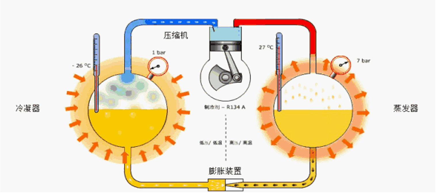 蒸發(fā)一體機的壓縮機將蒸發(fā)器的低溫低壓制冷劑氣體吸入,壓縮成高溫高壓氣體,再排入冷凝器,與冷媒水進行熱交換而成為低溫高壓的制冷劑液體