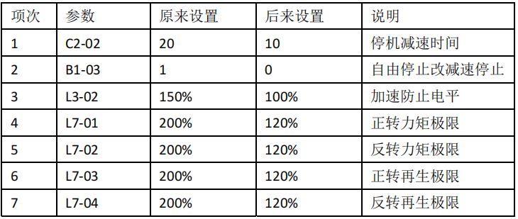 d.發(fā)現(xiàn)變頻器停止設(shè)定為”自由停車”,此時變頻器不輸出,鋼繩和圓盤在不受控情況下,可能堵住巖石洞口。