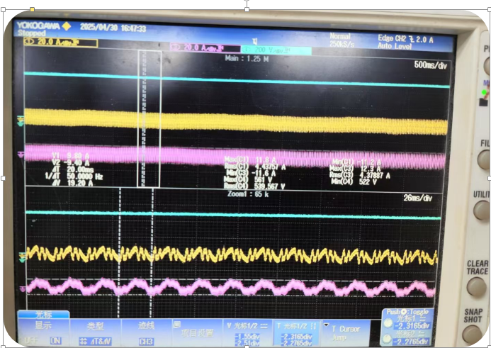 現場調試時,架上示波器,監視變頻器運行的畫面