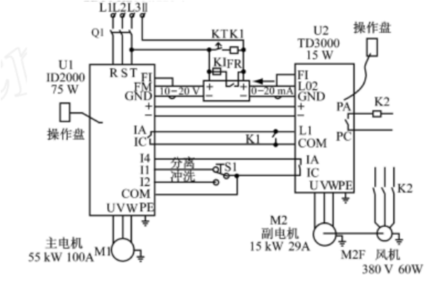 2:現場主速55kW,副速15kW變頻器,搭配使用。